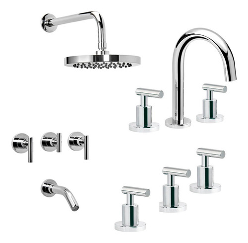 Griferia Set Lavatorio Bidet Ducha Baño Peirano Adra 90-166 Color Cromado